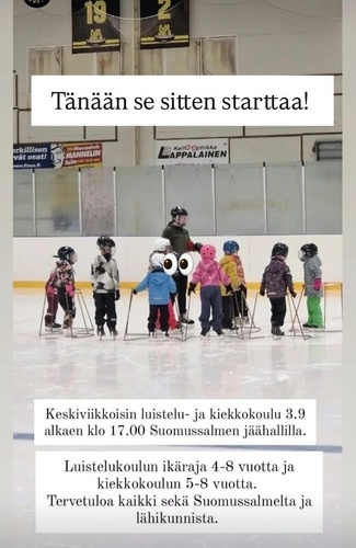 Luistelu- ja kiekkokoulu keskiviikkoisin klo 17-17.50